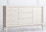 Основой коллекции стал массив дуба, шпон дуба и фанера с добавлением элементов МДФ. Благодаря такой комбинации Facet получает выразительный природный рисунок древесины, который особенно красиво раскрывается под светлой бежевой эмалью.