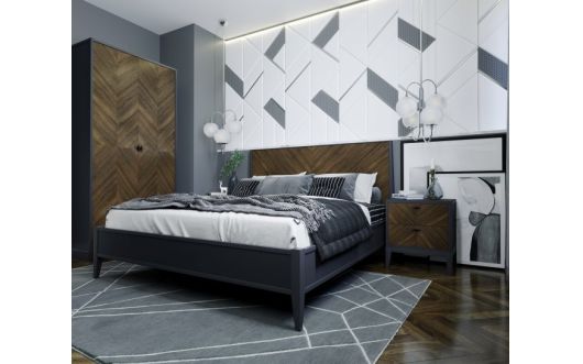Коллекция представлена в разнообразных темных и светлых оттенках, гармонично сочетающихся с цветом дерева. Шпонированные фасады и природный рисунок на филенке создают неповторимый и привлекательный облик.